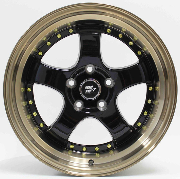 18x9.5 MST MT07 Gloss Black w/ Bronze Machined Lip 5x4.5/114.3 20mm