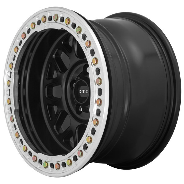 18x9 KMC KM235 Grenade Crawl Satin Black w/ Machined Ring (True Beadlock) 8x6.5/165 -24mm