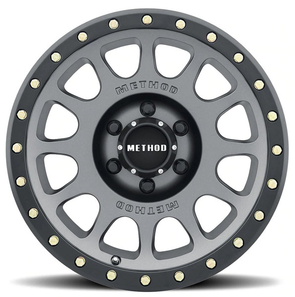 18x9 Method Race MR305 NV Titanium w/ Matte Black Lip 8x6.5/165 18mm