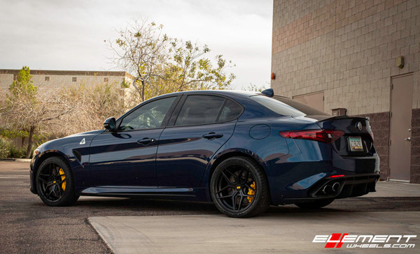Staggered 19 Inch Variant Xenon in Satin Black on a 2019 Alfa Romeo Giulia Quadrifoglio