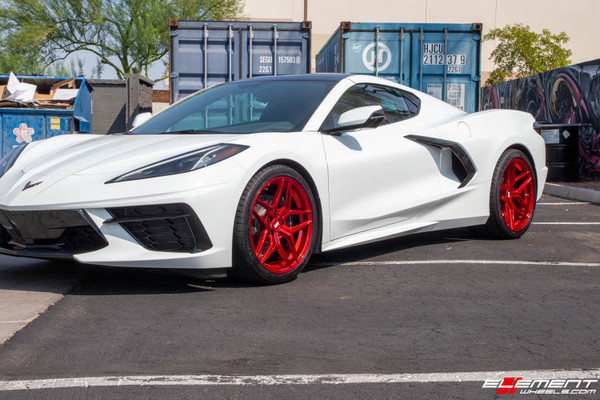 Double Staggered 19 Inch Variant Xenon in Blood Red Translucent on a 2020 Chevrolet Corvette C8 Z51