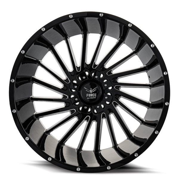 20x12 Force Off-Road F38 Gloss Black Milled (* May Require Trimming) 5x5.5/139.7 5x5/127 -44mm