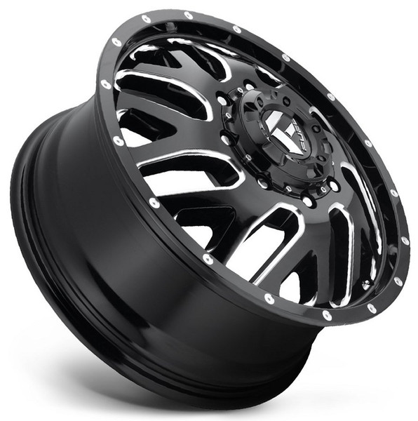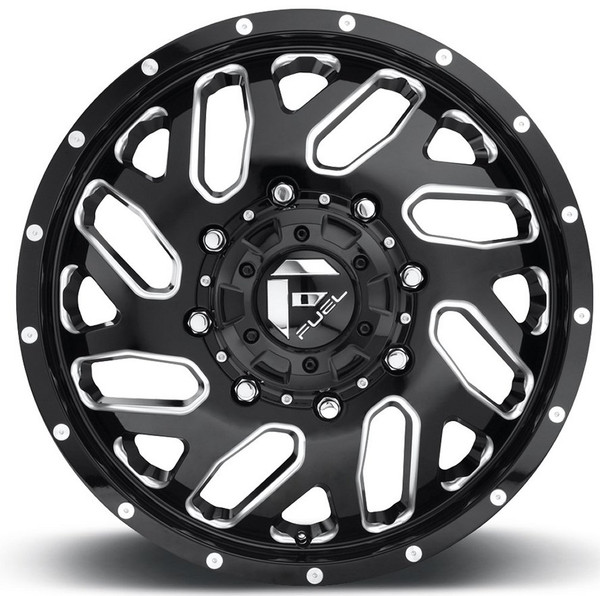 20x8.25 Fuel Off-Road Triton Black Milled Dually Front D581 8X6.5/165 105MM 121.5 C.B.