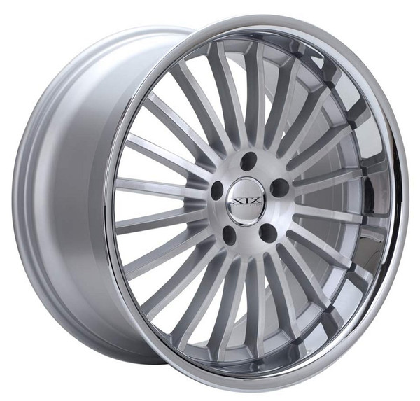 20x8.5 XIX X59 Silver Brushed Face w/ Stainless Steel Chrome Lip 5x120 20mm