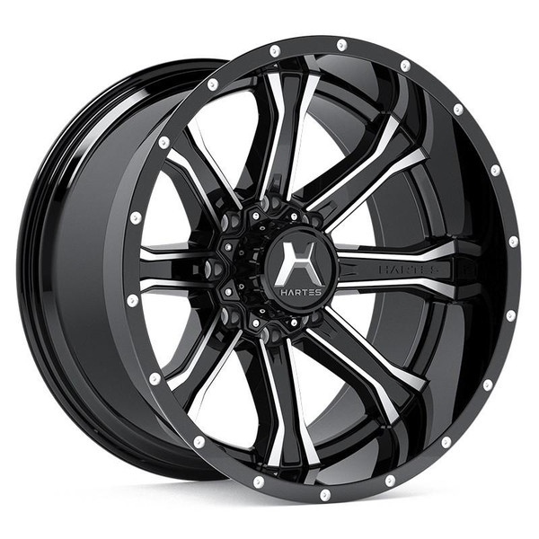 20x9 Hartes Metal Off-Road Strike Gloss Black Machined & Milled Dimple 6x135 6X5.5/139.7 15mm