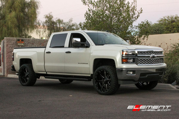 22 inch Fuel Off-Road Maverick Gloss Black Milled on 2014 Chevrolet Silverado (Leveled 2"-3")