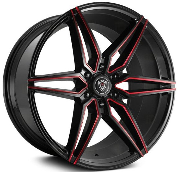 22x9.5 Marquee M3259A Gloss Black w/ Red Milled 6x5.5/139.7 30mm