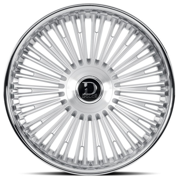 24x10 Dolce Luxury Razzo Gloss Silver Brushed w/ Stainless Lip 6x135 6x5.5/139.7 25mm