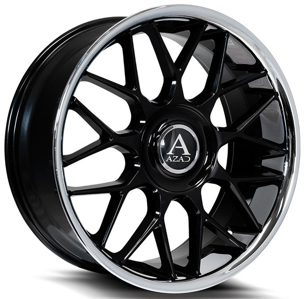 24x9 AZAD AZV02 Gloss Black w/ Stainless Steel Chrome Lip 5x112 5x120 30mm