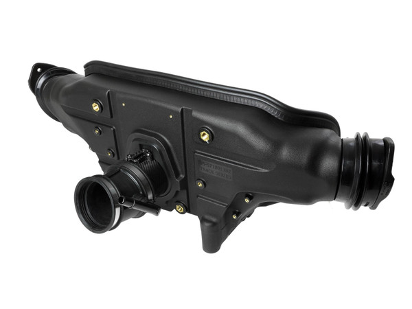 The dual air filters are surrounded by an open-element XLPE (cross-linked polyethylene) polymer housing that minimizes warm engine air for maximum performance. It is precisely designed and manufactured to fit perfectly into the factory mounting location. The housing connects to the factory air inlets on each side of the vehicle to capture the coolest air available. Silicone bellow couplings are used for engine movement and easy installation. All the factory harness and mounts are transferred to the back of the aFe POWER housing for a factory like installation. The radio antenna plastic melded on the factory air box is also transferred to the aFe POWER housing. The removal of the antenna from the factory air box requires two plastic melted mounting tabs to be cut off.