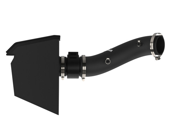 The included massive air filter is surrounded by a one-piece, black powder-coated 18-gauge heat shield that helps reduce the intake of hot air from the engine compartment for maximum performance. This heat shield requires no assembly and uses factory mounting locations for fast and easy installation.