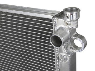The fabricated end tanks are constructed out of 1/8" aluminum plates for strength and durability.