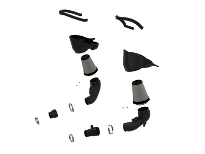 The included performance air filters are surrounded by open-element XLPE polymer (cross-linked polyethylene) housings that minimize warm engine air for maximum performance. The open design allows for easy viewing of the air filters and delivers an aggressive Air Intake sound. They utilize the vehicle's OE air inlets with no additional hardware.