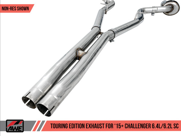 The Touring Edition Exhaust is available as non-resonated or resonated. We recommend the non-resonated variant for vehicles equipped with the factory headers. If your Challenger is equipped with aftermarket headers, we recommend going resonated. Have stock headers but planning to go aftermarket later? No worries, you can swap in the resonated mid sections with ease via an AWE Resonator Conversion Kit. Hit us here if you’re in need of this conversion kit.