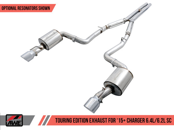 The Touring Edition Exhaust is available as non-resonated or resonated. We recommend the non-resonated variant for vehicles equipped with the factory headers. If your Charger is equipped with aftermarket headers, we recommend going resonated. Have stock headers but planning to go aftermarket later? No worries, you can swap in the resonated mid sections with ease via an AWE Resonator Conversion Kit.