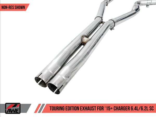 The Touring Edition Exhaust is available as non-resonated or resonated. We recommend the non-resonated variant for vehicles equipped with the factory headers. If your Charger is equipped with aftermarket headers, we recommend going resonated. Have stock headers but planning to go aftermarket later? No worries, you can swap in the resonated mid sections with ease via an AWE Resonator Conversion Kit.