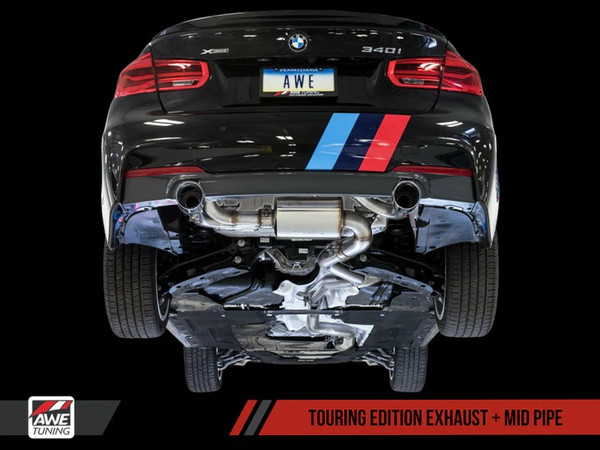 AWE Tuning BMW F3X 340i Touring Edition Axle-Back Exhaust - Chrome Silver Tips (90mm)