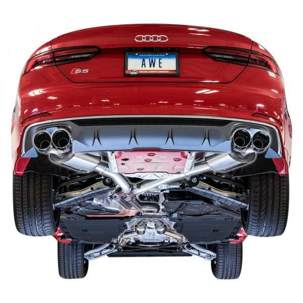 Touring Edition™ 304 SS Resonated Exhaust System with Quad Rear Exit (3015-42120) by AWE Tuning®. Recommended to be used with the Performance Catalyst, but not required. Exhaust Tubing Material: 304 SS. Exhaust System Sound: Moderate. A grin-worthy soundtrack coupled with signature AWE Tuning performance and quality honed over decades of supercar engineering. Let’s get ready to motor. Harder.