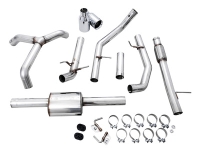 Complete 0FG Catback Exhaust, wheelbase adapter, two or four tips in desired finish, and all necessary hardware for installation.