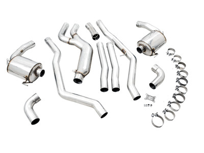 Have the stock downpipe but plan to go aftermarket later? No worries, you can swap in the resonated midsections with ease via an AWE Resonator Conversion Kit.