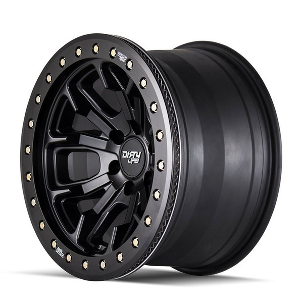 (Clearance - No Returns) 20x9 Dirty Life 9303 DT-1 Matte Black w/ Simulated Beadlock Black Ring 5x5.5/139.7 12mm