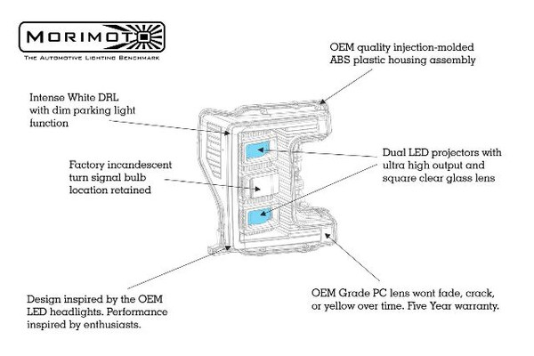 BANG FOR THE BUCK: The new Hybrid XB LED headlights from Morimoto have a design inspired by the 17-19 F250 OEM LED headlights. They cost a few hundred bucks less than the big boy XB's and although they have half the projectors, lets be real, who needs four eight projectors anyways? They do however offer all of the same great features that matter for most of us! Hybrid Spec: Using a combination of both LED & Incandescent bulbs (thus, "Hybrid") these offer much of the same amazing features that the original. Their LED daytime running light is still insanely bright, easily visible during the day. The optics used in the DRL are shared with the high-end version of the XB's -- which reallly kicks ass because that's a fan favorite for those who are shopping for an upgrade. Inside: The diffuser for the DRL has the same smoked lens, However, they do have an amber LED side marker and of course use a halogen bulb for the turn signal right in the middle. They use the same OEM-grade housing that won't fade or yellow over time. PERFORMANCE: The XB Hybrid headlights have a powerful, wide, and bright LED low beam projector, and a dedicated LED high beam projector too. Their optics were specially developed just for use the new lineup to produce a killer beam pattern despite the affordable price point. Street Legal: They're also completely DOT approved. Their LED projector optics meet & exceed all SAE, DOT, and FMVSS108 regulations when aimed properly...which is pretty easy to do using the simple vertical adjuster on the back. These are much more than an upgrade that looks good, they're going to far out-perform most other headlight upgrades you can buy too. WIRING: These things are designed to work on your truck without any modifications, so if you're not really one for wiring, not to worry. There's only three connectors that are simply plug n play with the factory wiring. One for the low and high beam, one for the turn signal bulb, and one for the DRL. I don't know about you: But we are a big fan of anything that packs a lot of bang for the buck -- and these new Hybrid XB's from Morimoto have it all.